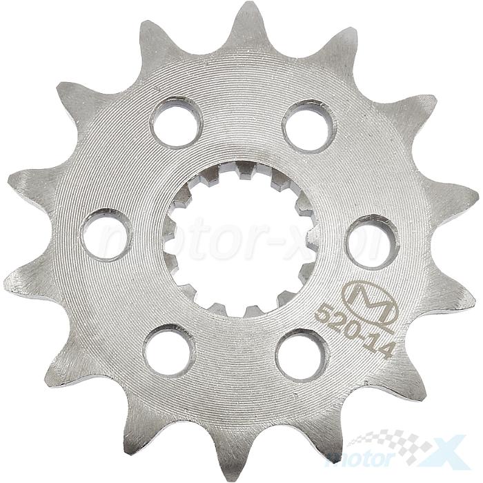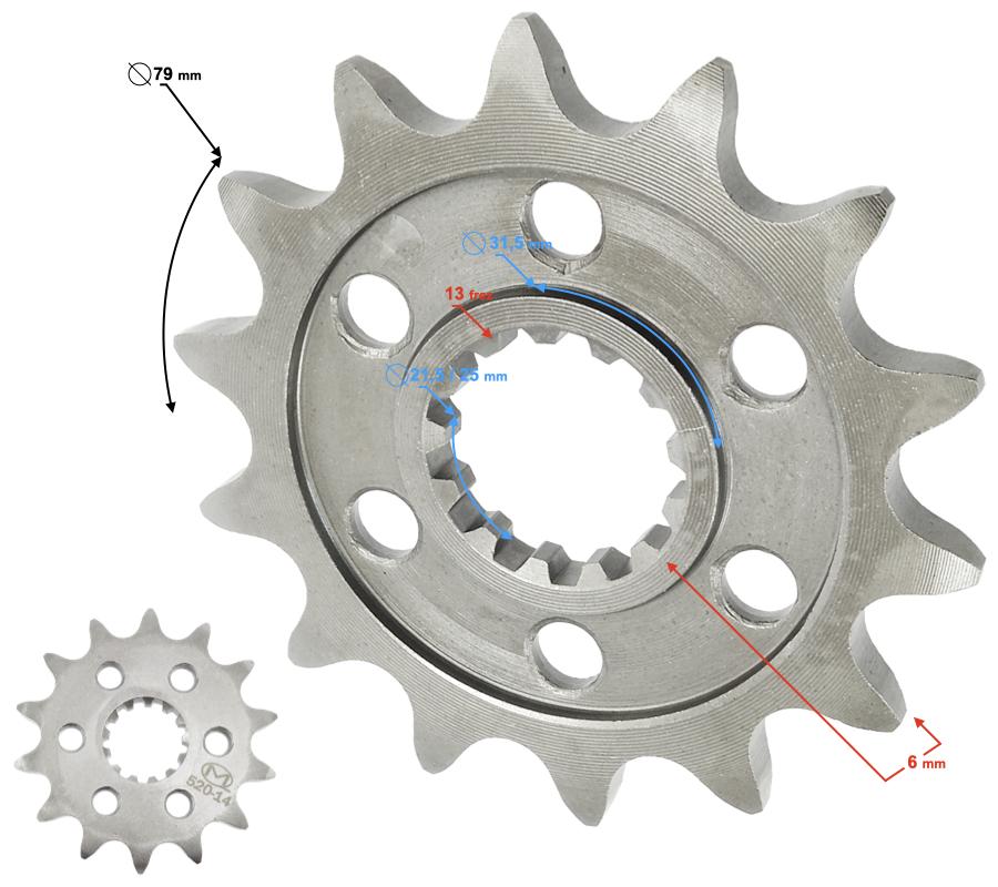 El piñón de 14 dientes con un paso de 520 asegura una relación de transmisión óptima, traduciéndose en una conducción suave y dinámica.